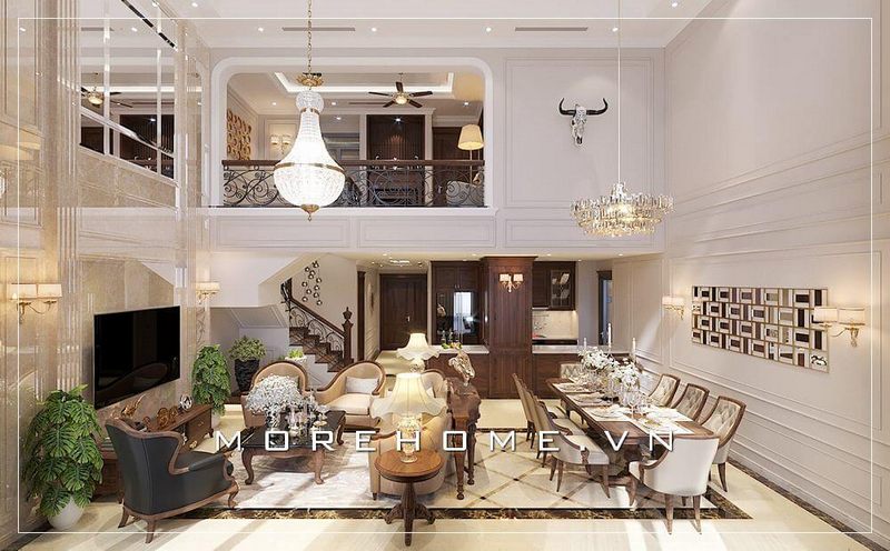 Vẻ đẹp hiện đại, trẻ trung của phòng khách biệt thự, nhà phố với tâm điểm là bộ sofa văng da ấn tượng và nội thất gỗ óc chó cao cấp thu hút mọi ánh nhìn.