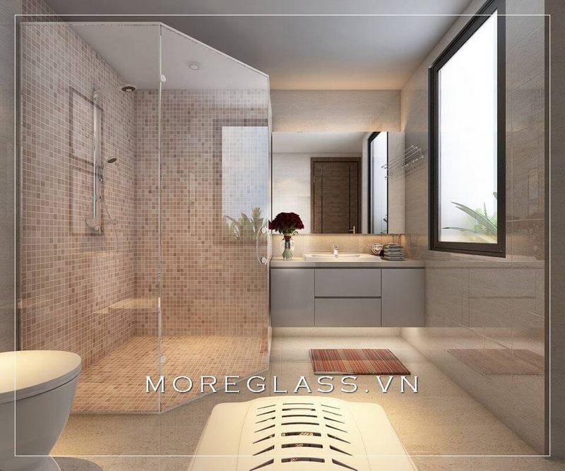 Mẫu thiết kế nội thất nhà tắm hiện đại, tiện nghi với cửa sổ kính lớn cho nhà phố, khách sạn, biệt thự cao cấp