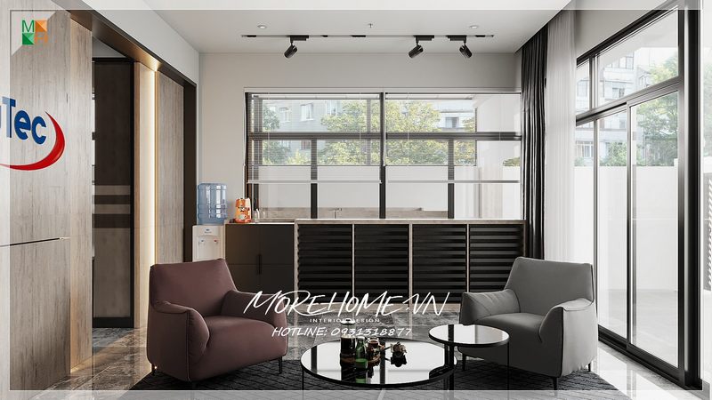 Văn phòng được thiết kế theo phong cách hiện đại với đồ nội thất thông minh và tiện lợi.